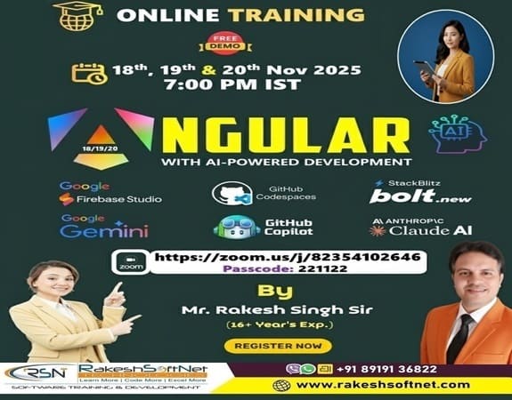 We are here to provide you the best weekend training on all the progressive Technologies like ASP.NET, ASP.NET MVC, ASP.NET Core, ASP.NET Core MVC, Angular JS, Angular 2,4,5,6,7,8,9 & 10, jQuery, React JS, React Native, Type Script, Express JS, Mongo DB, Microsoft Azure, Xamarin and many other courses which are totally cost effective & career oriented. RakeshSoftNet presents weekend training program in a format that will facilitate working professionals to participate in such learning programs to enhance their knowledge & skills with advanced concepts irrespective of technologies as per current IT trends.